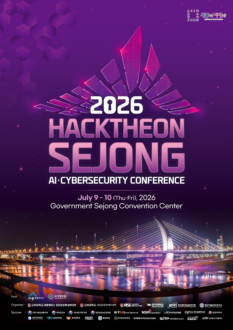 세종특별자치시에서는 대학생 사이버보안 역량 강화 및 인재 발굴을 위해 매년「핵테온 세종(HackTheon* Sejong)」국제 대학생 사이버보안 경진대회를 개최하고 있습니다. 관심있는 학생들의 많은 지원 바랍니다.